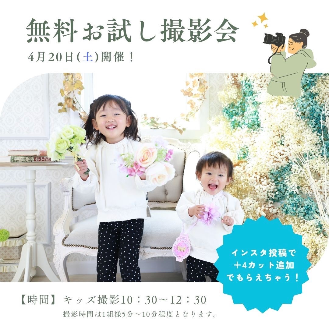 4/20(土)キッズ無料お試し撮影会開催!
